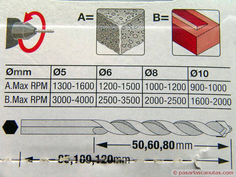 ... estas son las recomendaciones de velocidades del fabricante de la broca.