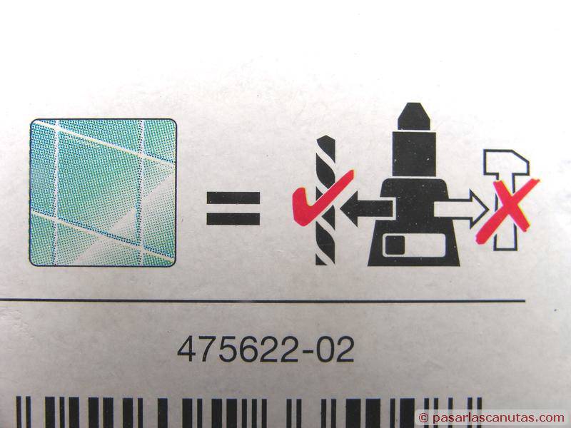 Tal como recomienda el fabricante de las grapas-taco, no voy a usar percusión (igual que recomienda para el azulejo el fabricante de la broca, aunque yo voy a taladrar yeso y ladrillo) ...