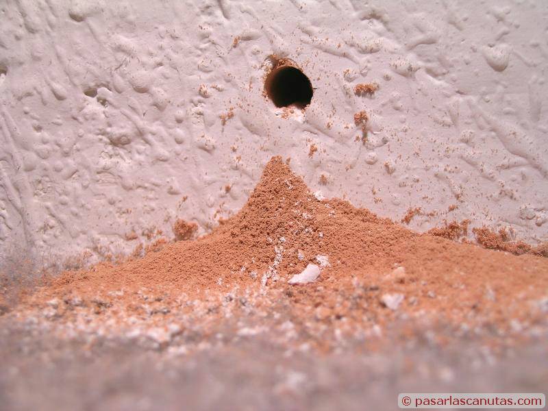 ... después de marcar los puntos de taladrado, en este caso cada 30 cm., taladro con una profundidad mínima de 25 mm., que es la recomendada por el fabricante para la grapa-taco GT 66 ...