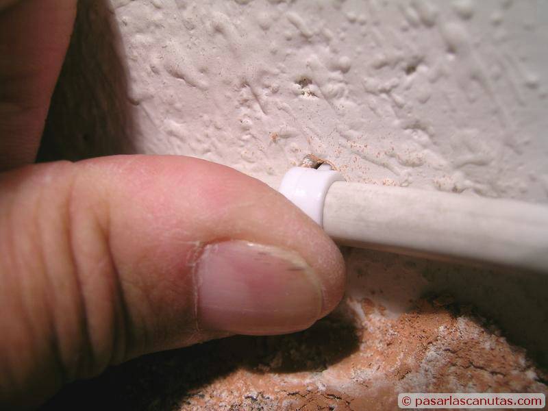 ... las introduzco en los agujeros, con cuidado de que quede ajustado el cable, ya que en este caso queda aprisionado y no permite una fácil corrección (estiramiento del cable) posterior ...