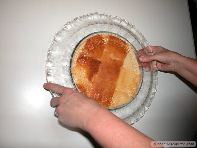 ... ponemos el plato grande de cristal encima para darle la vuelta ...