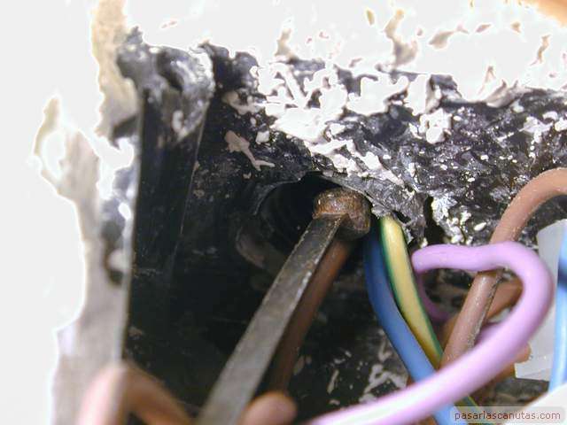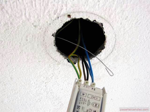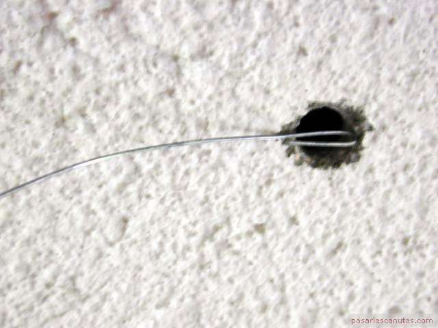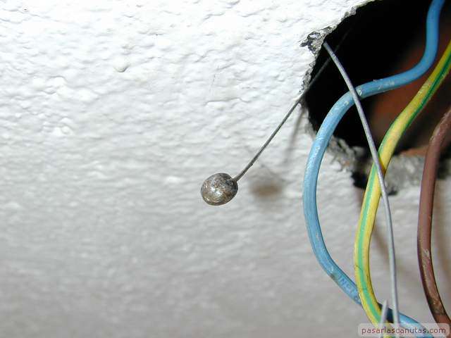 ... la introduzco por el tubo corrugado del cajetín de conexiones eléctricas próximo al techo ...