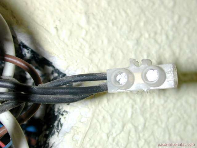 ... identifico la clema o regleta de cables negros en el cajetín de conexiones eléctricas próximo al techo ...