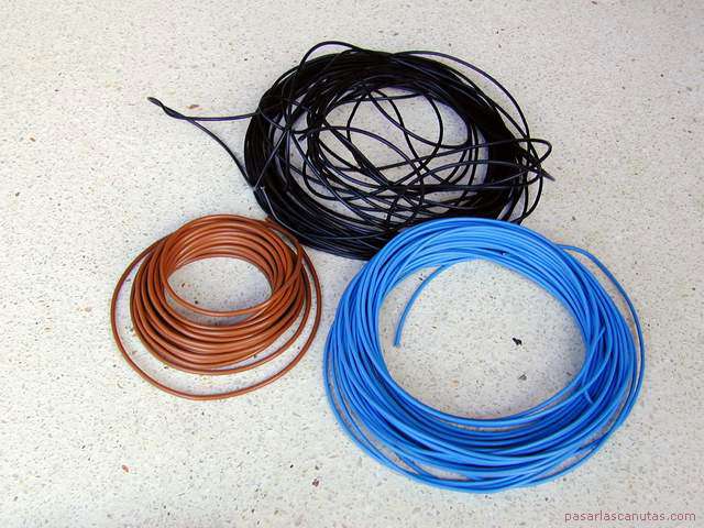... preparo los cables : negro para fase, azul para neutro y marrón para la salida del contacto del sensor ...