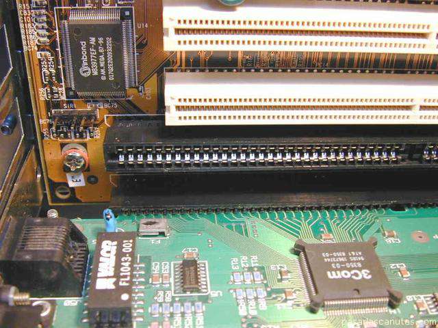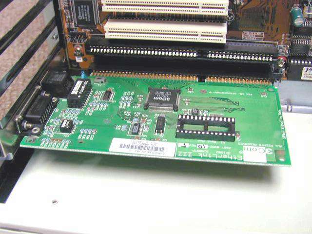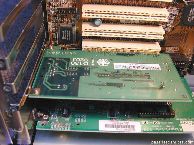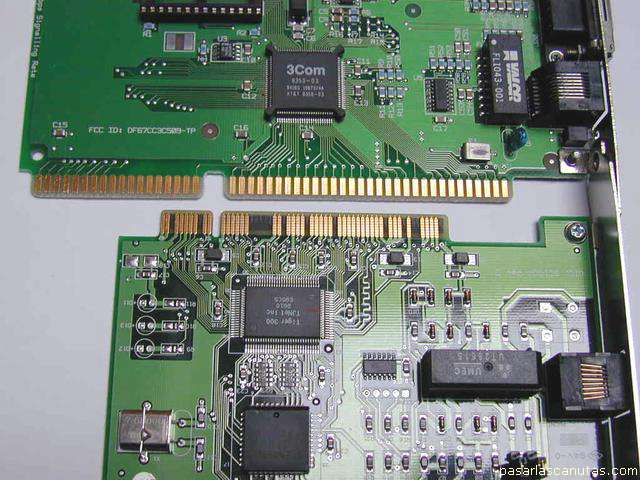 The LAN board (above) is the old ISA type, and the ISDN one (down) is PCI type. Here you can see the difference in the connectors.