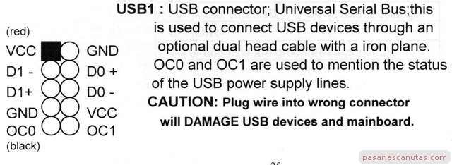 podido encontrar en el mercado la placa que menciona este manual. Lo que sí es posible es encontrar plaquitas con las dos conexiones USB separadas en dos conectores independientes). |