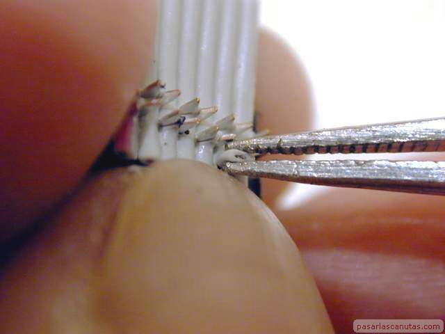 ... y sujetando fuertemente con la uña del dedo pulgar izquierdo los conductores que no hay que levantar, voy separando ...