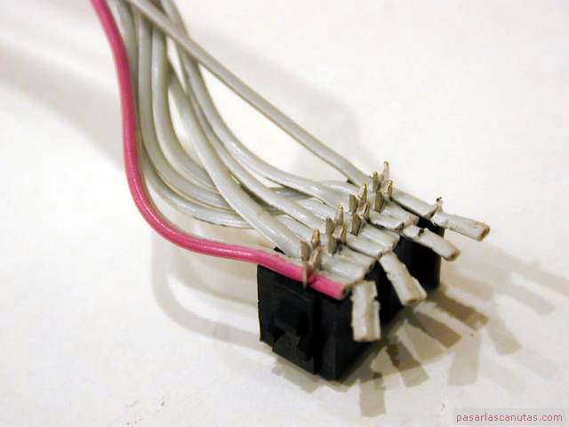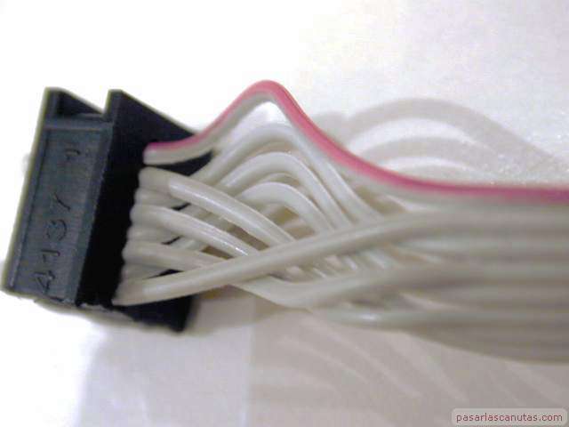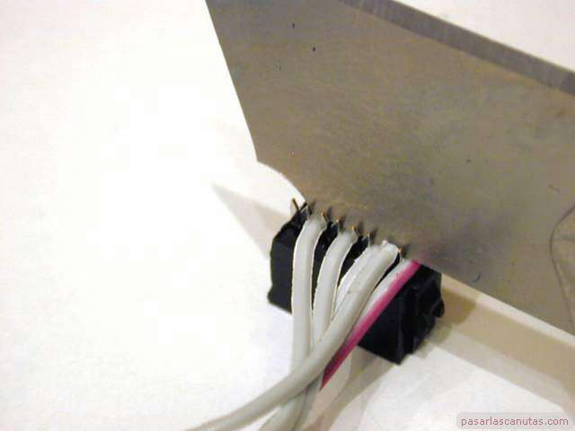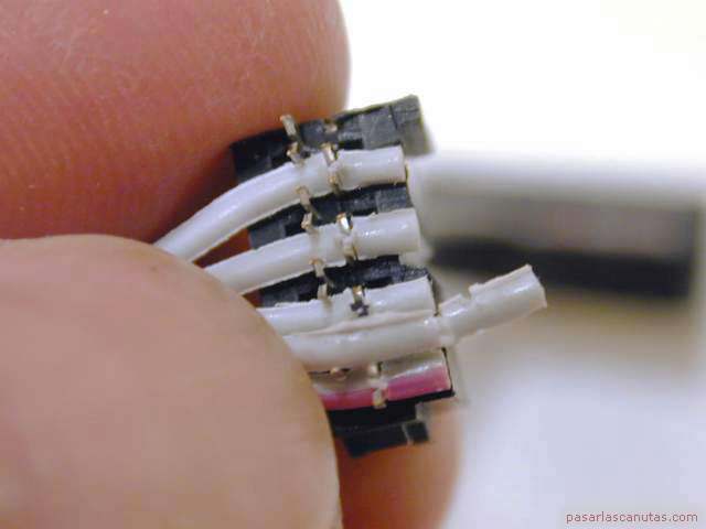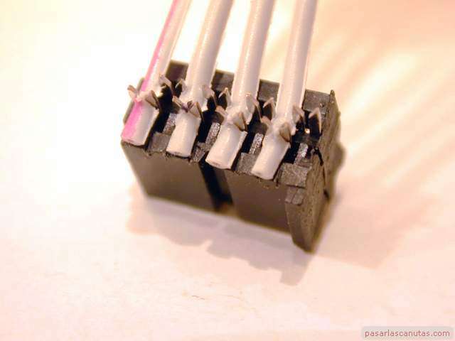 ... y con el dedo pulgar, sin forzar los cables, que son delicados, lo meto a tope. Cuidado, que la marca roja tiene que ponerse tal como se ve, sobre el pin nº1