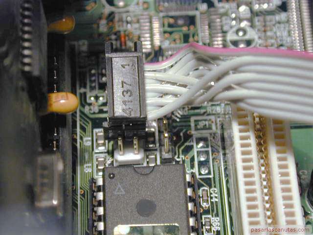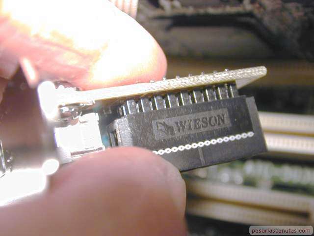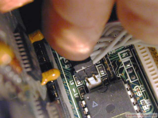 ... primero posiciono el conector pequeño (los dos últimos pines del conector de la placa base quedan al aire) ...