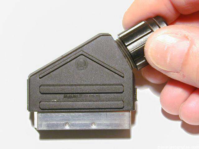 Esta parte del reportaje describe en fotos cómo construir un cable para conectar la salida RCA del ordenador a la televisión por su entrada de euroconector, scart, peritel o euro-av. En estos otros reportajes de Pasarlascanutas tenéis información complementaria que os puede ser útil en este tema: - Conectar el PC a la TV: conexión S-Video a Scart 1. Describe en fotos cómo usar un kit muy común así como solucionar el problema que se da con algunos equipos antiguos en que no se puede configurar la salida minidin de la tarjeta gráfica y no tienen entrada s-video en el euroconector, para no ver la TV en blanco y negro. -Posibles combinaciones de conectores, señales y cables de video al conectar el pc a la television. Tabla gráfica en fotos con el fin de intentar ayudar a clarificar este tema en lo posible. 12 combinaciones diferentes con conectores s-vhs s-video, rca, y euroconector peritel scart o euro-av -Configurar la salida de tv de una tarjeta grafica geforce. Tutorial en 17 fotos sobre configuracion de una tarjeta grafica geforce para su conexión a la television.