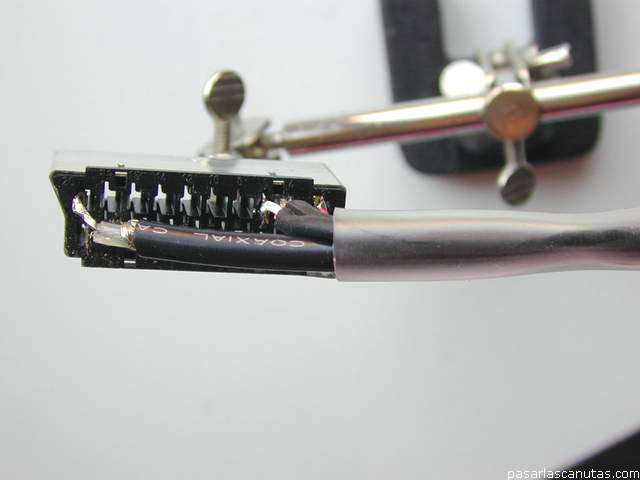 Segunda página del reportaje en fotos sobre cómo construir un cable para conectar la salida RCA del ordenador a la televisión por su entrada de euroconector, scart, peritel o euro-av. En estos otros reportajes de Pasarlascanutas tenéis información complementaria que os puede ser útil en este tema: - Conectar el PC a la TV: conexión S-Video a Scart 1. Describe en fotos cómo usar un kit muy común así como solucionar el problema que se da con algunos equipos antiguos en que no se puede configurar la salida minidin de la tarjeta gráfica y no tienen entrada s-video en el euroconector, para no ver la TV en blanco y negro. -Posibles combinaciones de conectores, señales y cables de video al conectar el pc a la television. Tabla gráfica en fotos con el fin de intentar ayudar a clarificar este tema en lo posible. 12 combinaciones diferentes con conectores s-vhs s-video, rca, y euroconector peritel scart o euro-av -Configurar la salida de tv de una tarjeta grafica geforce. Tutorial en 17 fotos sobre configuracion de una tarjeta grafica geforce para su conexión a la television. |
