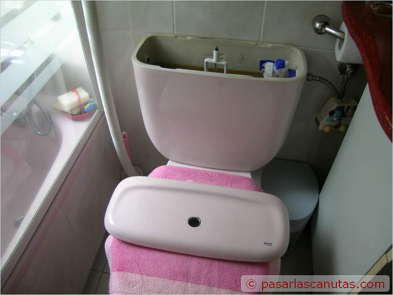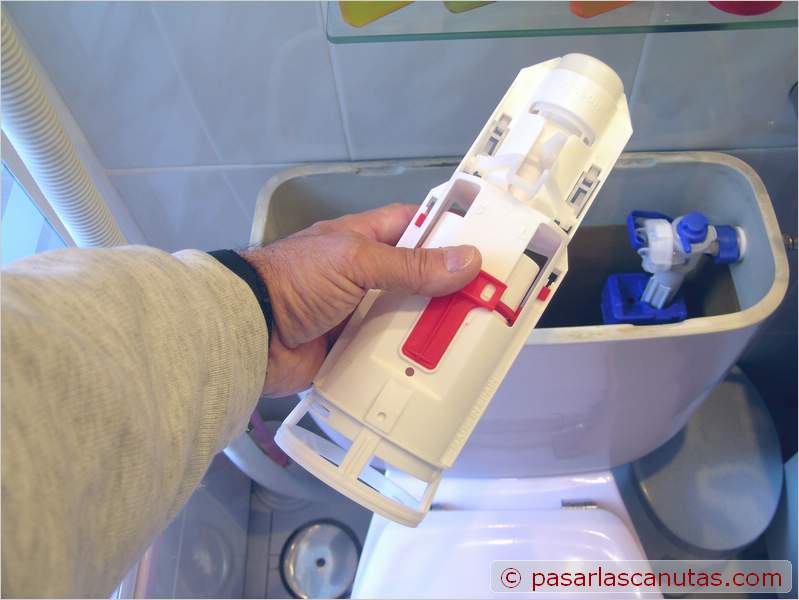 Reportaje en 36 fotos 800x600 sobre la instalación de un descargador moderno de doble pulsador en sustitución de otro