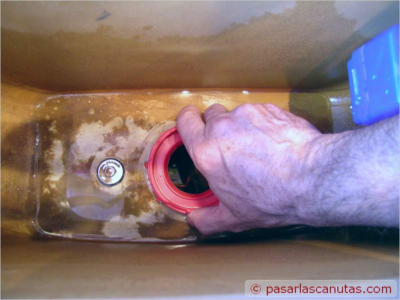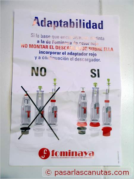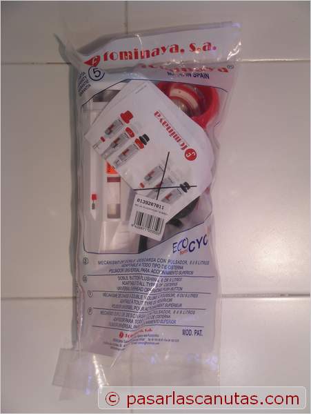 envejecido o averiado. La instalación de este tipo de descargador, junto con una válvula de llenado Fluidmaster® de funcionamiento rápido y biestable, como la que presentamos hace ya tiempo en nuestro reportaje Fontanería: instalación o cambio-sustitución de una válvula flotador de entrada de agua de cisterna de taza de water es mi preferida. Todas las sustituciones que he realizado en los últimos años son de este tipo. No obstante, teniendo en cuenta la gran diversidad de dispositivos de taza y cisterna existentes, a la hora de adquirir esta clase de materiales, es conveniente llevar apuntados la marca y modelo del conjunto taza-cisterna para que el vendedor se asegure de que nos suministra el modelo de descargador y/o válvula adecuados. Continuando con nuestra costumbre de mostrar montajes probados, esta solución la publicamos ahora después de un largo tiempo de experimentación en diferentes lugares. Veamos este montaje: Las marcas registradas son propiedad de sus respectivos propietarios. |