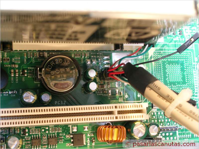 ![]() ... conecto tres ventiladores de caja (aquí hay varias alternativas, dependiendo del criterio y del uso: nosotros elegimos inicialmente control manual de los de discos, dejar desconectado el de arriba y conectar el trasero a FAN5) ... |