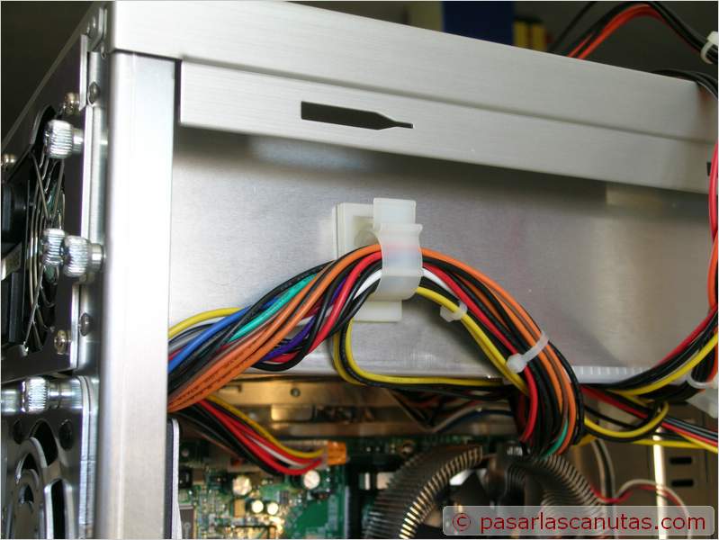 ![]() En el grueso de cables de alimentación pongo una brida adhesiva para sujetar tanto cable suelto ... |