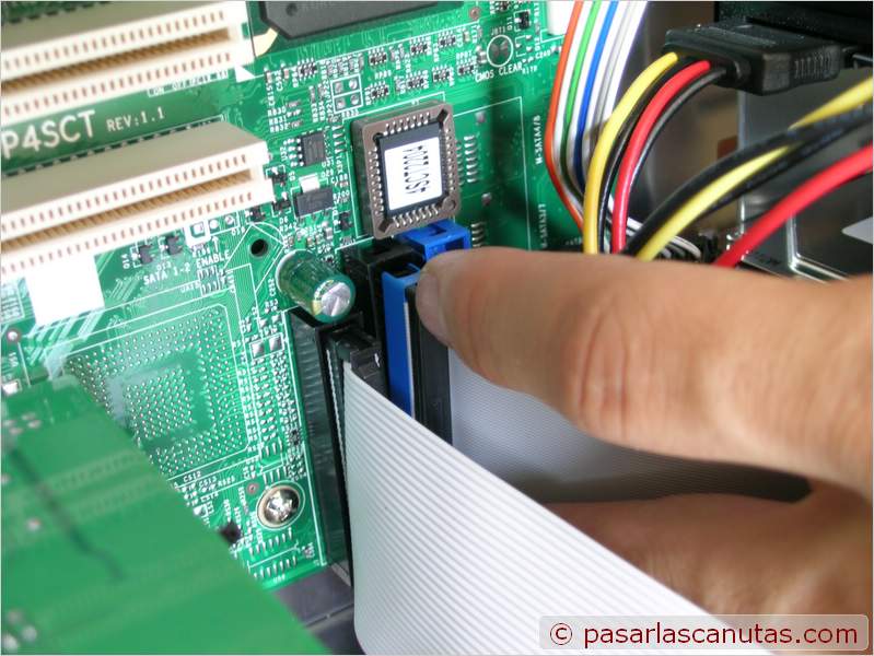 ![]() ... conecto los cables planos de disquetera y grabadora de DVD, tanto en la placa base como en los aparatos ... |
