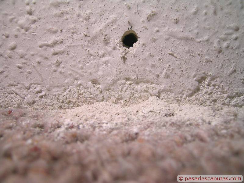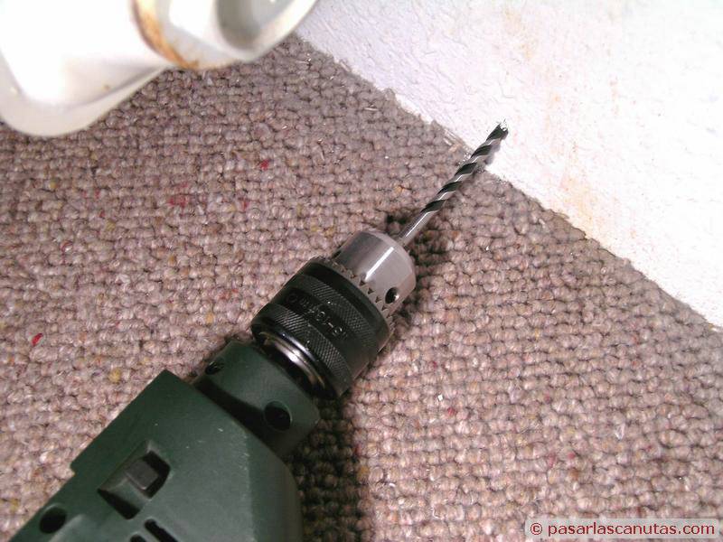 ... después de marcar los puntos de taladrado, en este caso cada 30 cm., taladro con una profundidad mínima de 25 mm., que es la recomendada por el fabricante para la grapa-taco GT 66 ...