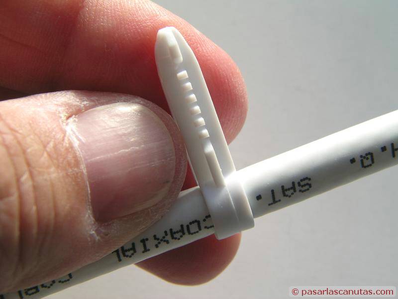 ... las introduzco en los agujeros, con cuidado de que quede ajustado el cable, ya que en este caso queda aprisionado y no permite una fácil corrección (estiramiento del cable) posterior ...