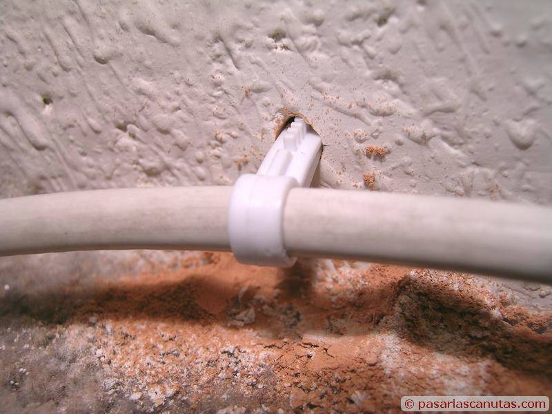 Así queda el cable tendido por la pared (la grapa-taco le da buen aspecto a una instalación que siempre tiene algo de antiestético)