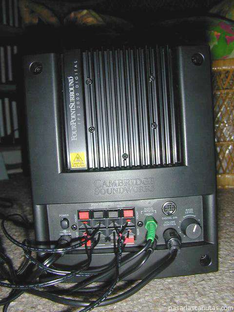 En este reportaje os mostramos cómo nos las arreglamos en su día para conseguir un sistema de sonido tipo " cine en casa " aprovechando un reproductor de DVD cuya compra se estudió para que tuviera todas las salidas analógicas, además de digitales, de manera que se le pudiera acoplar un four point surround de Creative (Cambridge Soundworks) de los más baratos. Nota de PasarlasCanutas de Febrero 2002: A fecha actual ya es posible adquirir conjuntos 5+1 de Creative a un precio aproximado de 170 euros; conviene no obstante en cada caso, asegurarse de que se pueden enchufar a la salida del reproductor de DVD sin problemas. Consideramos que el reportaje sigue siendo interesante, ya que por menos de 100 euros aún es posible adquirir sistemas de cuatro altavoces + subwoofer de rendimiento próximo al que se puede ver aquí, aunque el ahorro no es tan grande como hace un año. Nosotros estamos preguntando ya por reproductores sobremesa capaces de reproducir AVI-MPEG4 (Div-X), pero aún no los hemos visto. Las marcas registradas son propiedad de sus respectivos propietarios |