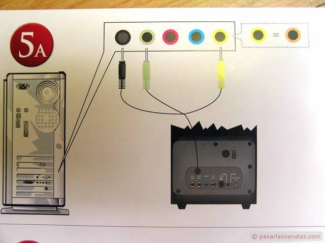 ![]() ... éstos son los tres jacks de 3,5 mm. (las tres entradas del subwoofer), para conectarlos al DVD, necesitamos ... |