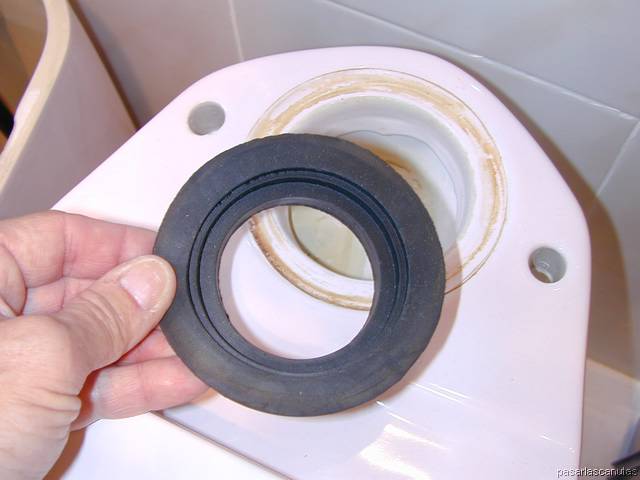 ... cojo la junta tanque-taza que he comprado nueva ...