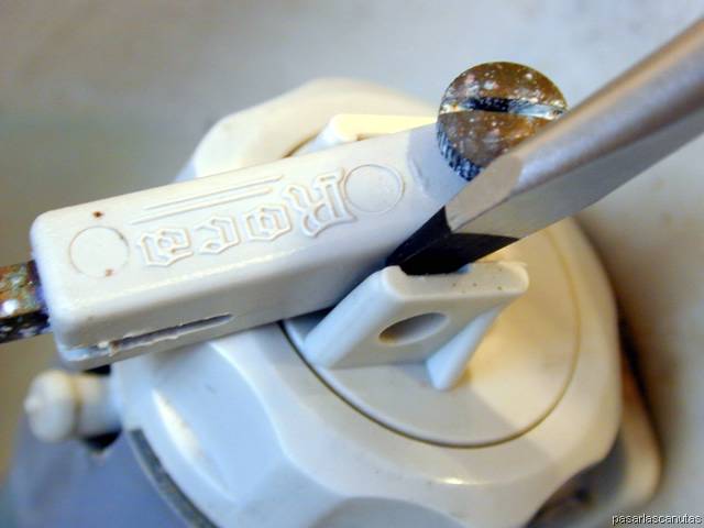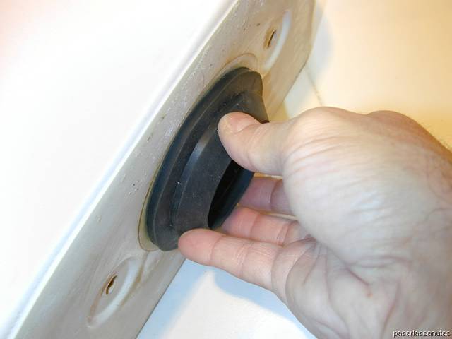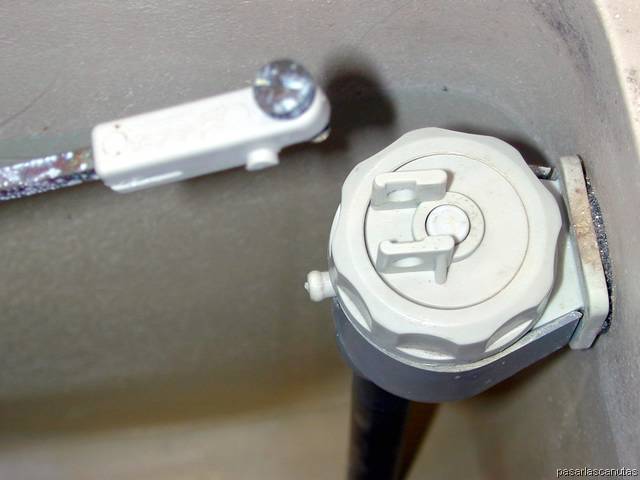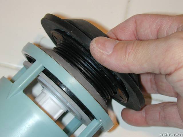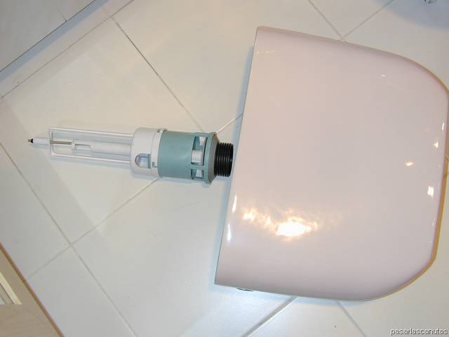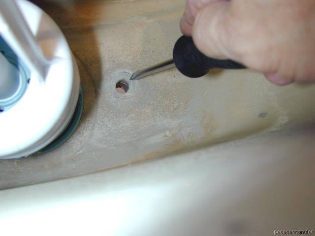 ... introduzco el tubo roscado del descargador nuevo por el agujero correspondiente de la cisterna ...