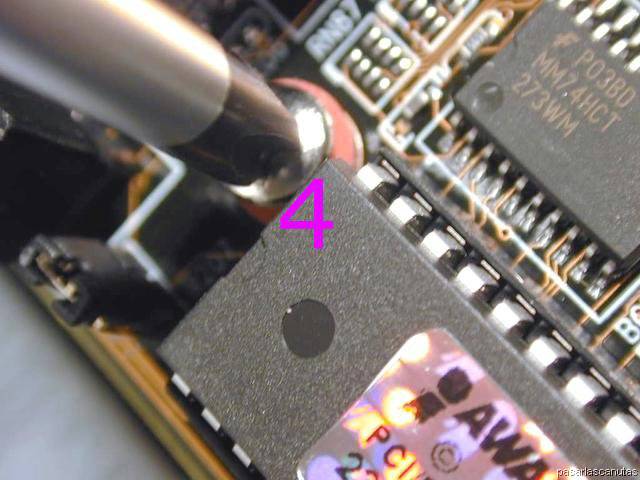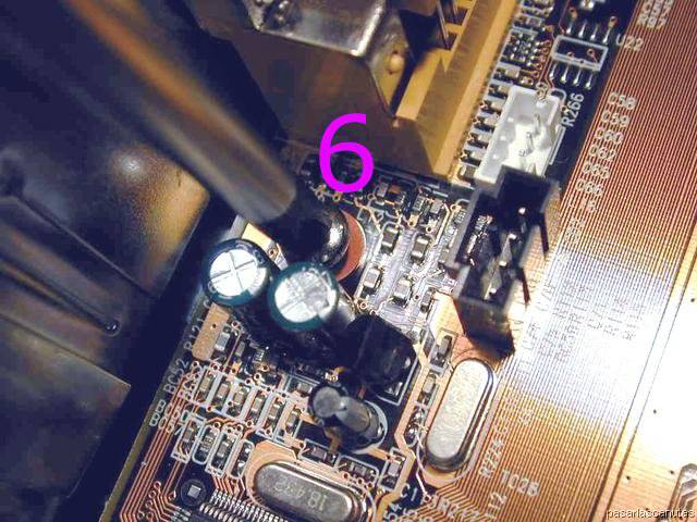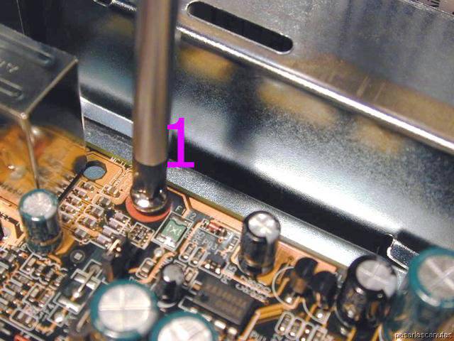 ... y 6: es muy importante que la placa base esté firmemente sujeta por los seis tornillos, y separada de la caja metálica por los separadores.