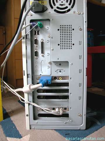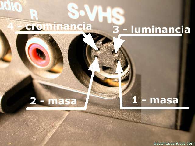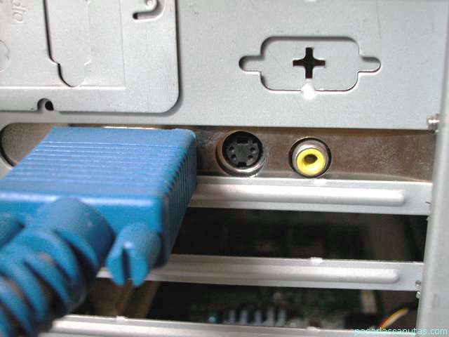 Normalmente para conectar la señal de video del PC a la TV se utiliza un cable comercial ya preparado al efecto, o un kit con el que se compone la conexión que se necesita, cuyo uso podéis ver en la secuencia de fotos de esta primera página de conectar el PC a TV. Prácticamente todas las tarjetas gráficas modernas tienen la salida del conector s-video de 4 , 7 o más pines configurable, de manera que pueden sacar s-video (luminancia por pin 3 y crominancia por pin 4, que podéis identificar en las fotos de abajo) o video compuesto por pin 3. De esta forma, la conexión no debe presentar problemas, ya que se puede escoger cualquiera de estas dos alternativas y, por tanto, que la señal se vea en color en cualquier tipo de televisor, tanto si tiene entrada s-video como de video compuesto. En algunas tarjetas gráficas antiguas, sin embargo, el tipo de salida no es configurable, ni siquiera por un puente de hardware; en este caso, cuando solamente se dispone de las señales de luminancia y crominancia separadas (S-video, pines 3 y 4), y no existe este tipo de entrada en el televisor, quizás por ser también algo antiguo, sino que únicamente tiene una entrada de video compuesto, al utilizar el kit de conexión convencional, la señal se ve en blanco y negro, no en color. No obstante, antes de atribuir como causa de ver la TV en blanco y negro a lo apuntado arriba, conviene repasar la lista de comprobación siguiente, ya que las causas más probables de ver el ordenador en la televisión en blanco y negro son: - errores varios de configuración de la tarjeta gráfica - tener configurado el sistema NTSC en un país en que se usa PAL-B/G (o viceversa) - tener configurada la salida s-video en la tarjeta gráfica, y conectada a una entrada de la TV que solamente acepta video compuesto (o viceversa) - fallos en las conexiones de los cables y/o conectores - demasiada longitud del cable que transporta la señal de video, o cable inadecuado (más de 15-20 m. de cable especial s-video o no usar RG-59 con video compuesto) En este manual - tutorial fotográfico de Pasarlascanutas os mostramos el ejercicio básico de cómo componer el kit, en una conexión normal y corriente (lo que debe ser suficiente en la mayor parte de los casos), y dos alternativas sobre cómo hacer una chapuza para que en el caso de una salida del PC de s-video rígida (no configurable) y una entrada de la tv de video compuesto rígida (con entrada única sin posibilidad de configuración ni adaptación), la señal de video se vea en color. El truco en este último caso, consiste en unir la señal de crominancia a través de un condensador de 470 pF. a la de luminancia. Esta forma de mezclar las dos señales está lejos de ser perfecta, pero tiene la cualidad de ser relativamente sencilla de aplicar, y el color se puede ver aceptablemente. Dado que el conector SCART, también llamado peritel o euroconector admite una gran diversidad de señales, tanto de entrada como de salida en sus 20 patillas de conexión, y que los circuitos electrónicos de cada fabricante pueden ser diferentes, no podemos asegurar que lo que aquí decimos sirva, ni sea seguro para el equipo, en todos los casos posibles. Lo que sí es seguro es que el reportaje está tomado sobre la vida real, como de costumbre en Pasarlascanutas: nosotros lo hemos usado en la realidad en varios televisores que no aceptaban otra conexión, y ha funcionado. Las pruebas están realizadas en España, con sistema PAL. Recomendamos ver previamente nuestros reportajes: - Conectores, señales y cables de video para conectar el PC a la Televisión. ( Información en forma de tabla gráfica con las distintas variantes posibles de conexion del ordenador a la television ). - Configurar la salida de tv de una tarjeta grafica GeForce. ( Tutorial en 17 fotos sobre configuracion de una tarjeta grafica GeForce para su conexión a la television ).