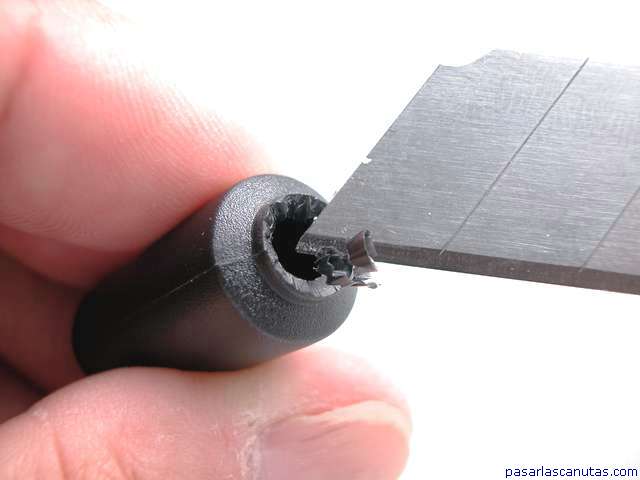 ... y con una cuchilla u otra herramienta abro el agujero, hasta que pasa el cable ...