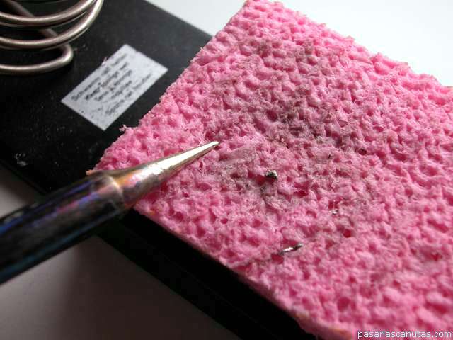 ... limpio la punta del soldador (ver el soldador de electrónica) en la esponja humedecida ...