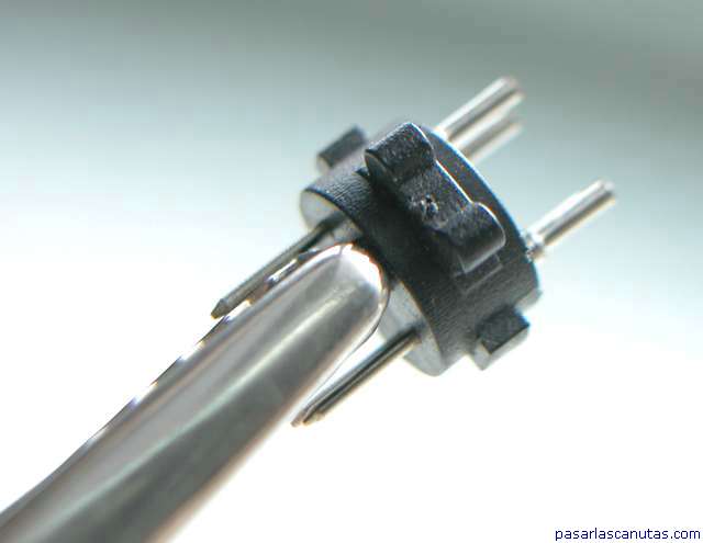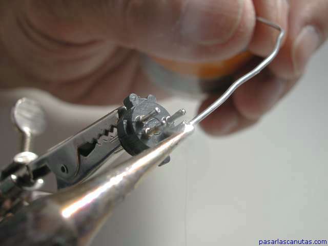 ... y estaño las patillas por el lado de soldadura muy rápidamente porque el plástico se derrite ...