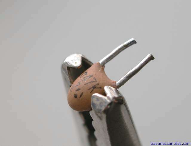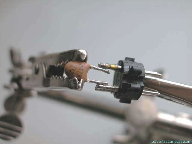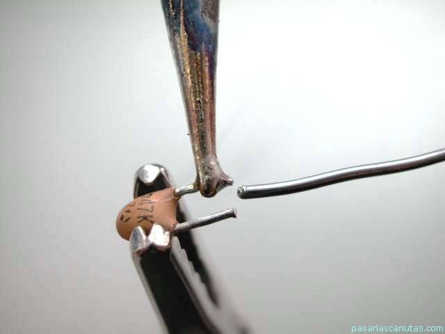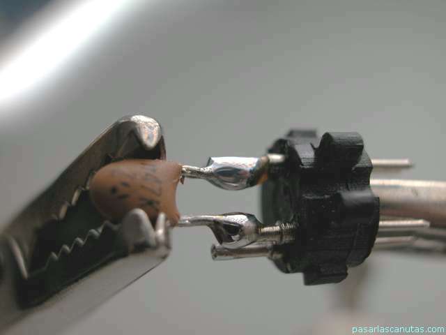 ... corto las patillas del condensador y las cierro un poquito ...