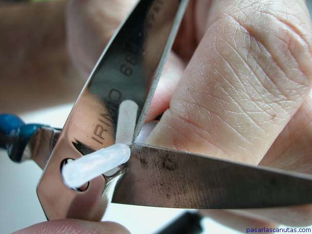 Ahora, con las tijeras de electricista, quito el aislante exterior del cable ...