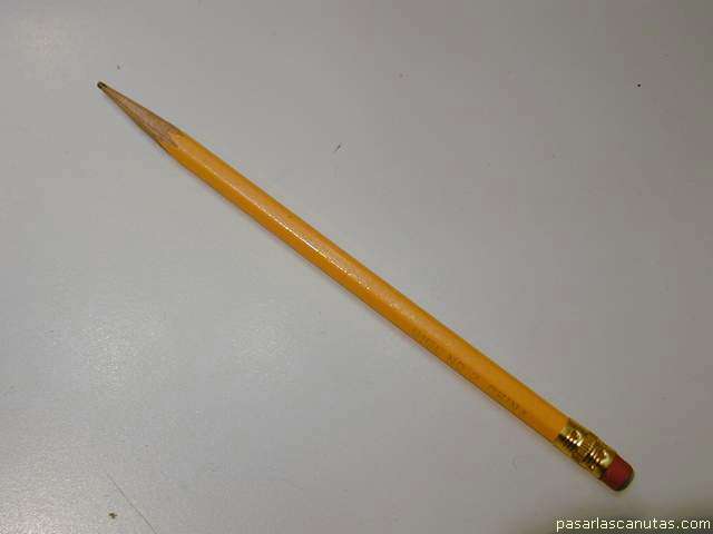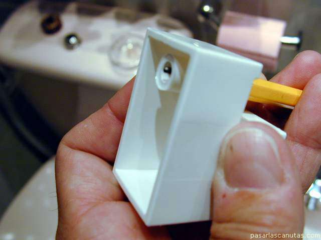 comprobando que el lapicero sobresale del agujero, y, por tanto puede marcar el punto de taladrado en el azulejo