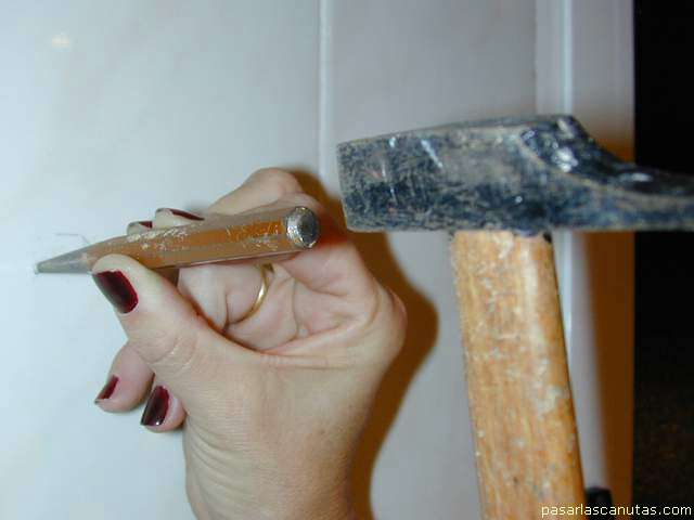 golpeando suavemente el puntero, descascarillamos el azulejo ... suavemente ...