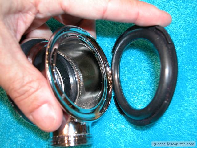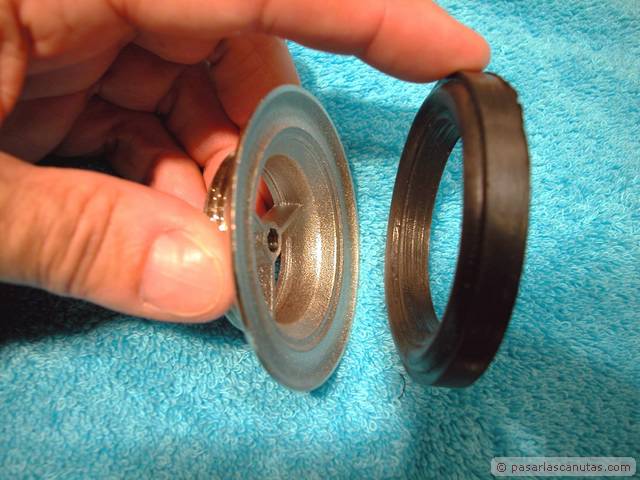 ... pieza metálica inferior con junta gruesa de goma ...