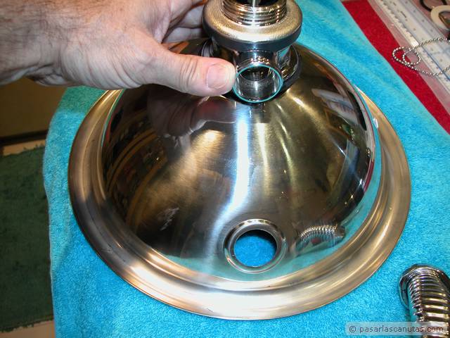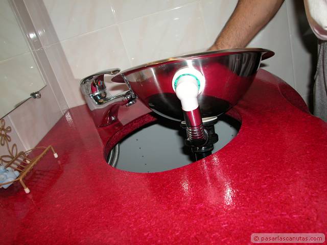 ... coloco encima el cuenco de acero inoxidable del lavabo ...