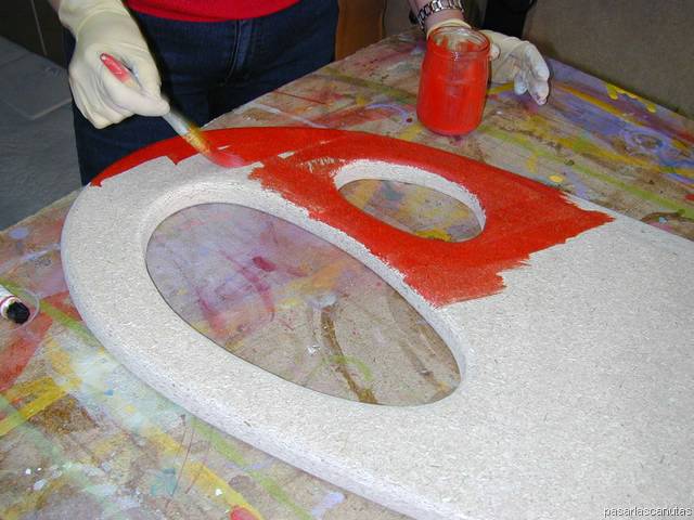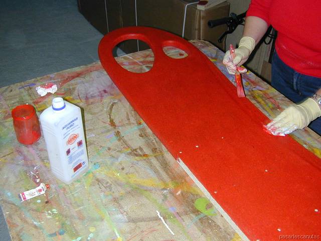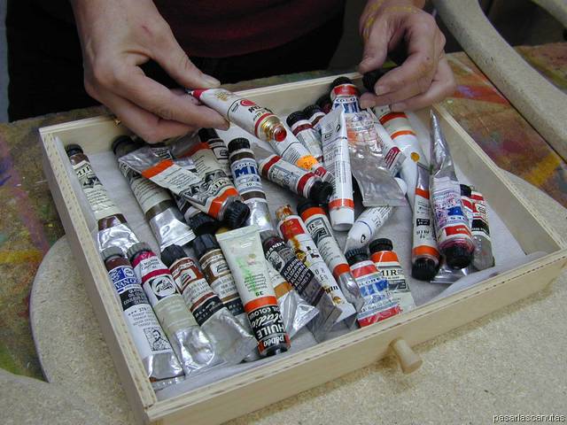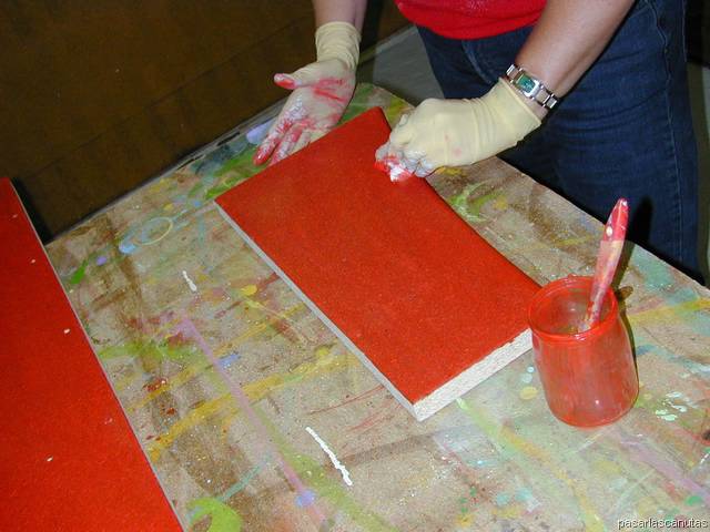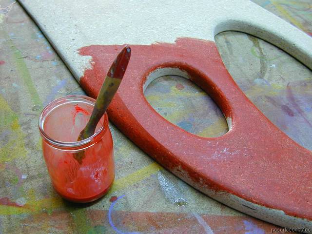 ... diluyendo la pintura en aguarrás, pintando con brocha ...