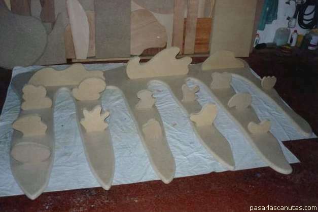 con todas las piezas cortadas con sierra de calar o caladora
