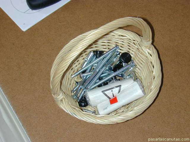 Comprobando los tornillos y demás pequeñas piezas incluídos en el kit |