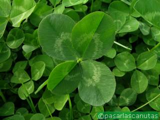 | Foto de un trebol de cuatro hojas auténtico. Buena suerte para todos. |