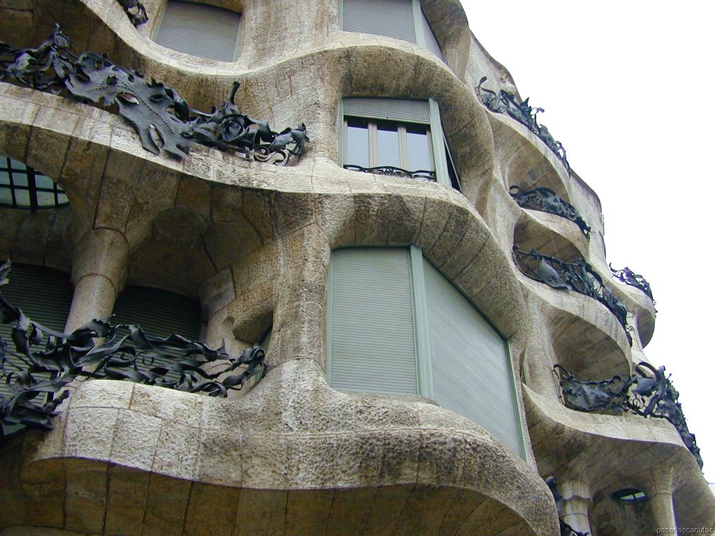 El tamaño de estas fotos de la Casa Milá - la Pedrera es, como habitualmente, de 1024 X 768 lo que permite utilizarlas como fondos de pantalla o escritorio (wallpapers). Algunas de las fotos son del estupendo museo, que incluye un piso abierto al público.