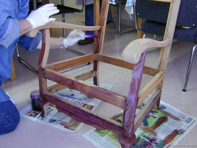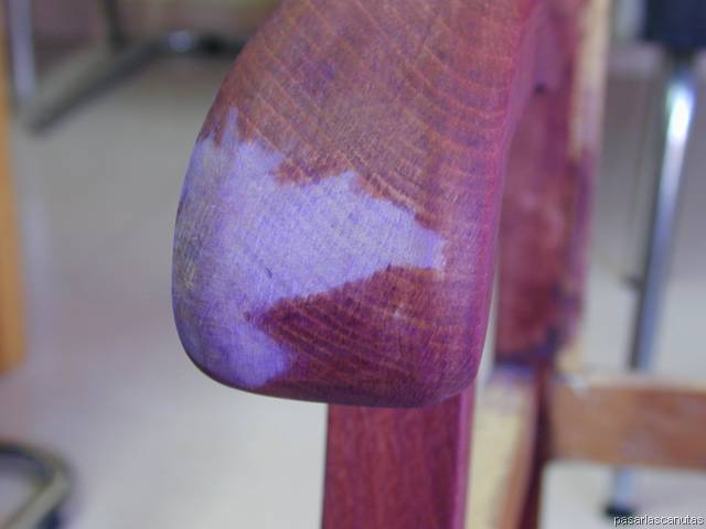 Aquí nos hemos saltado la regla más habitual, que es usar anilina al agua con maderas nuevas y anilina al alcohol con las viejas.