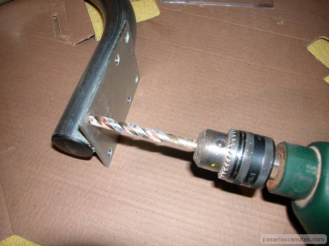Como los tornillos no pasan por los agujeros del soporte, los repaso con la misma broca, que también vale para metal ...