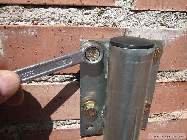 ... al igual que las tuercas que fijan el ajuste de posicionamiento vertical, para poder mover la antena.