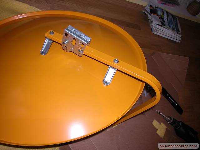 Ahora hay que apretar la brida (que sujeta el reflector y fija el ajuste de posicionamiento horizontal) ...