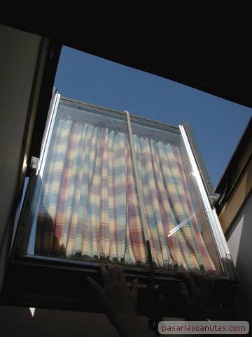 ... por el hueco por el que ya cabe, al estar la ventana desmontada ...