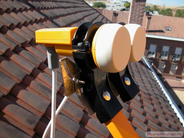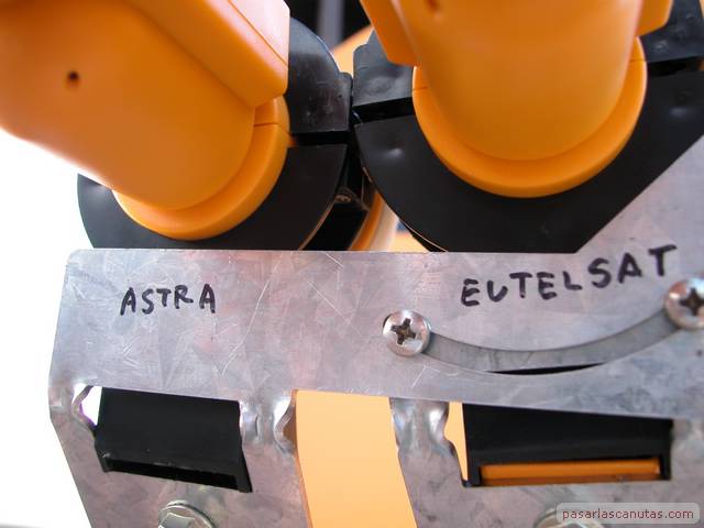 118 fotos sobre cómo instalamos una antena parabólica con dos LNB orientada a los conjuntos de satélites Astra y Eutelsat con medios domésticos.