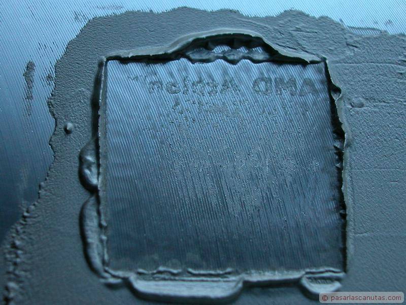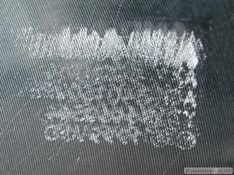 En esta segunda página de nuestro reportaje de opinión sobre el lapping, se pueden ver las marcas realizadas por otra CPU del mismo fabricante (una AMD Athlon MP 2000) en un disipador suministrado junto con la CPU ("in box"). Son mucho menores, entre otras cosas, porque el fleje de sujeción del disipador es mucho más débil que el del primer ejemplo, y seguramente por la propia dispersión estadística de la altura de las letras de la CPU. Si hiciéramos lapping en este caso, la ganancia probablemente sería menor que en el caso que hemos visto en la página anterior. Las fotos de este reportaje son mayores que lo habitual en los reportajes de bricolaje de Pasarlascanutas, en este caso de 800x600 con el fin de que podáis apreciar con el máximo detalle las pequeñas irregularidades de las superficies. |